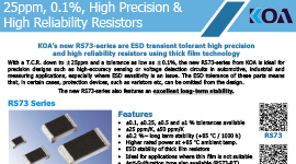 ตัวต้านทานจาก KOA เป็นตัวเลือกที่เหมาะอย่างยิ่งสำหรับเหล่านักออกแบบในตลาดที่มีความต้องการหลากหลาย เช่น ยานยนต์ อุตสาหกรรม การบินและอวกาศ การแพทย์ เครื่องมือ และการแปลงพลังงาน