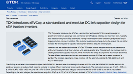 TDK xEVCap นั้นเป็นตัวเก็บประจุลิงก์ DC มาตรฐานและโมดูล่าที่ออกแบบมาสำหรับอินเวอร์เตอร์ระบบส่งกำลังในรถยนต์นั่ง รถเชิงพาณิชย์ และรถออฟโรด และเครื่องจักรต่างๆ โดยทั่วไปแล้ว ตัวเก็บประจุดังกล่าวนั้นสามารถปรับแต่งได้อย่างสมบูรณ์แบบ ทำให้ต้องใช้เวลามากในการพัฒนา และเหมาะกับการผลิตปริมาณมากเท่านั้น อย่างไรก็ตาม เนื่องจาก xEVCap ที่ปรับขนาดได้และเป็นโมดูลล่า จะทำให้ TDK สามารถช่วยผู้ออกแบบอินเวอร์เตอร์สามารถทำตามข้อกำหนดด้านความจุไฟฟ้าและกระแสไฟฟ้าที่หลากหลายในปริมาณที่ต่ำกว่า โดยที่ประหยัดเวลาอันมีค่า
